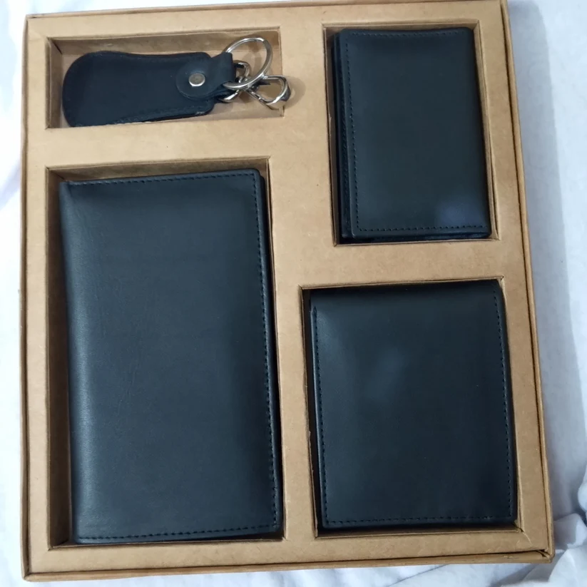 Premium leather wallet one Long Wallet, One medium Wallet, One Card Holde, One Key Chain and multiple card slots. Key Chain in laether. Best For your Loved ones.Unforgetabble for your loved Ones
